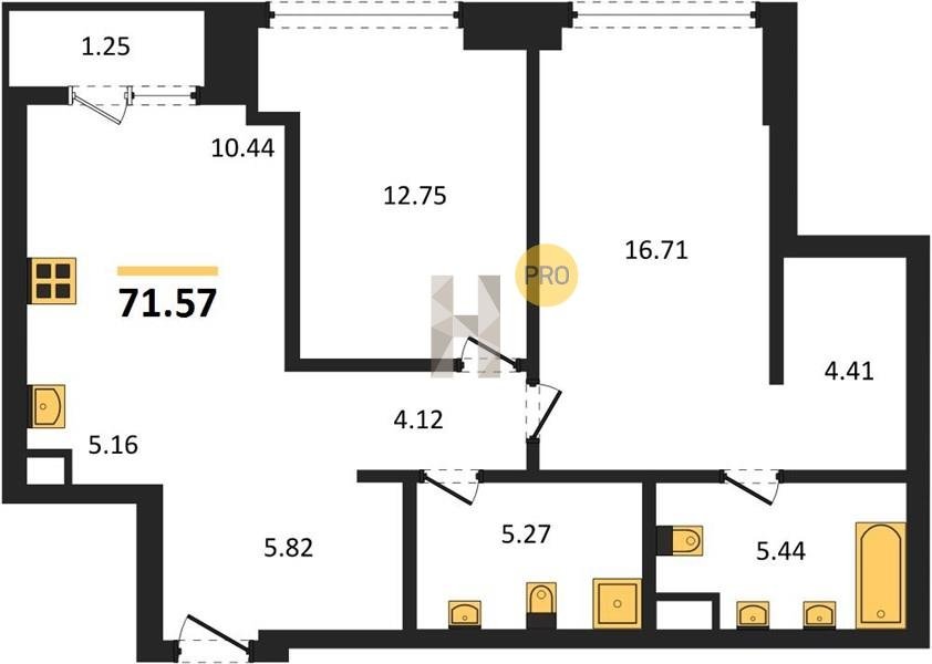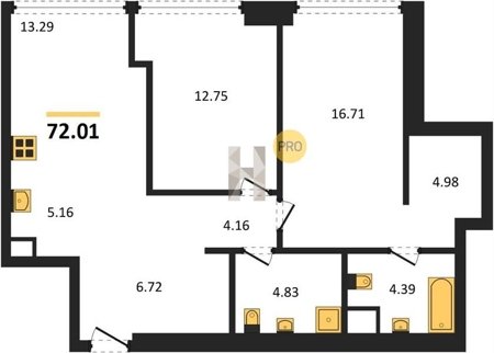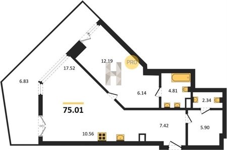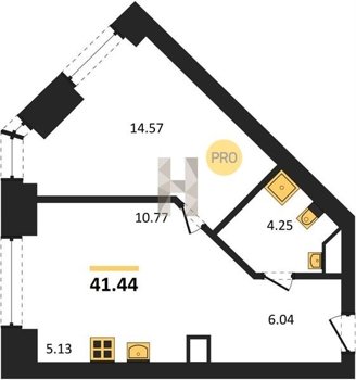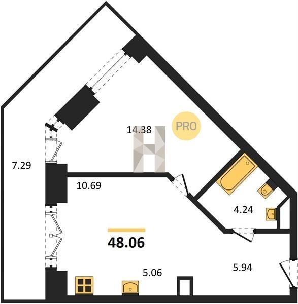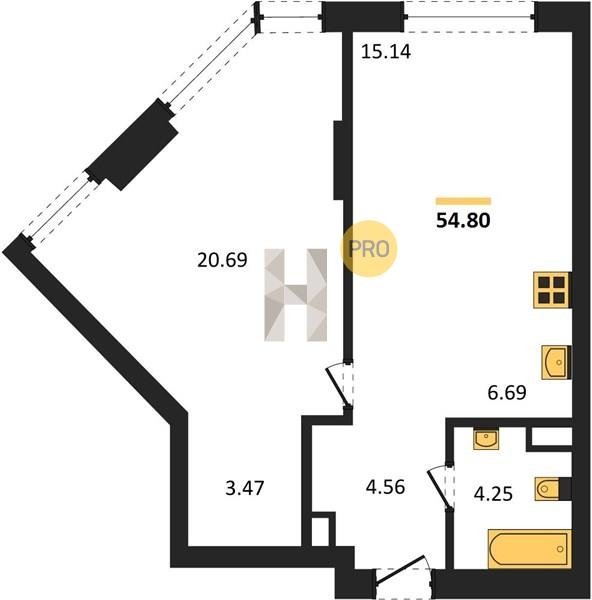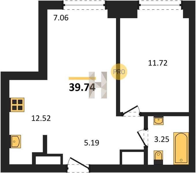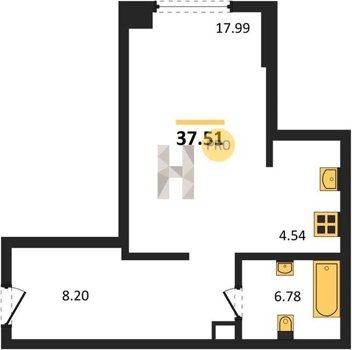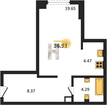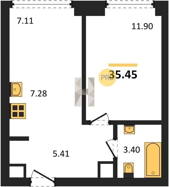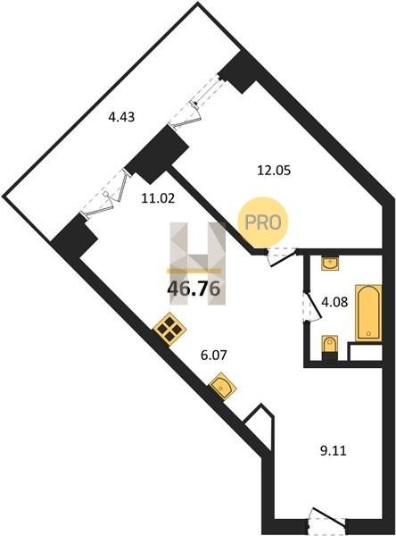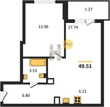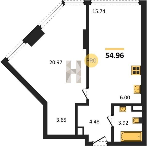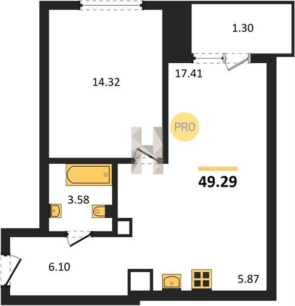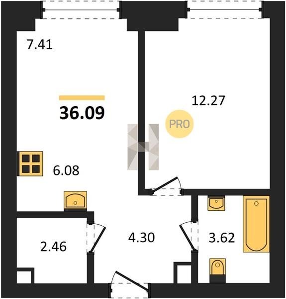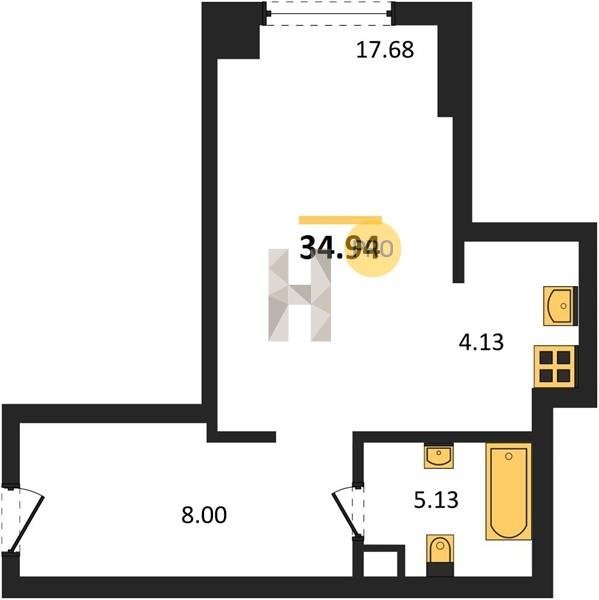 Площадь от 34.76 м2