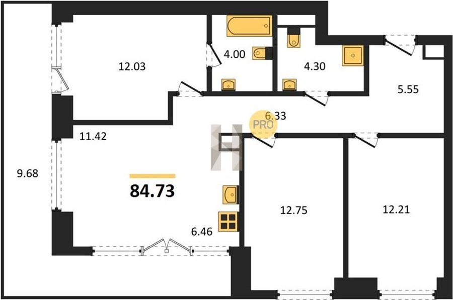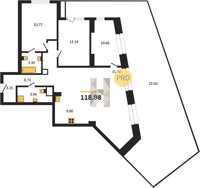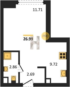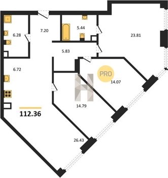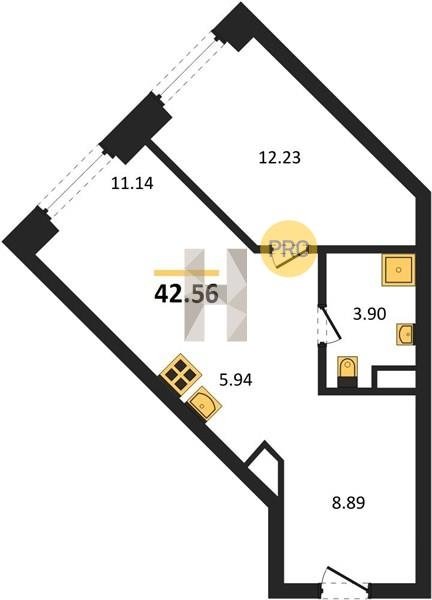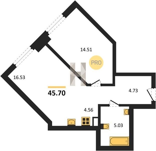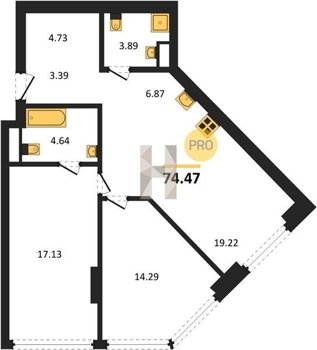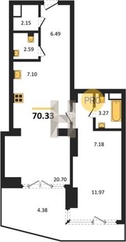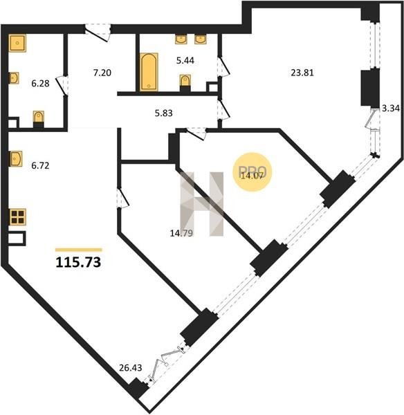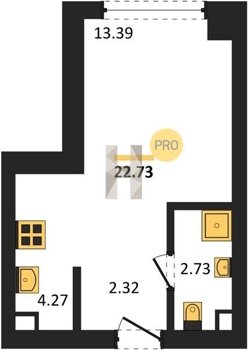 Площадь от 22.73 м2