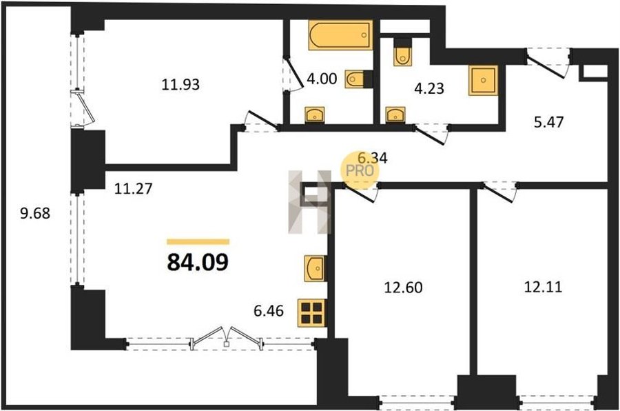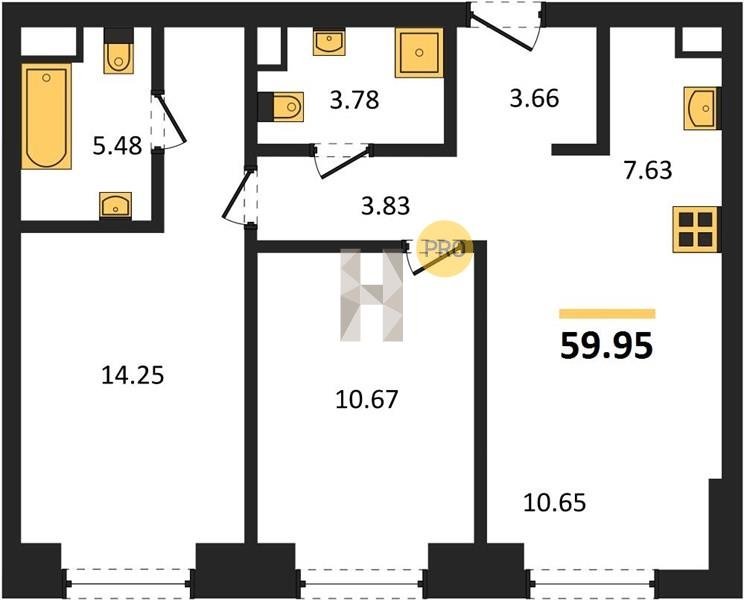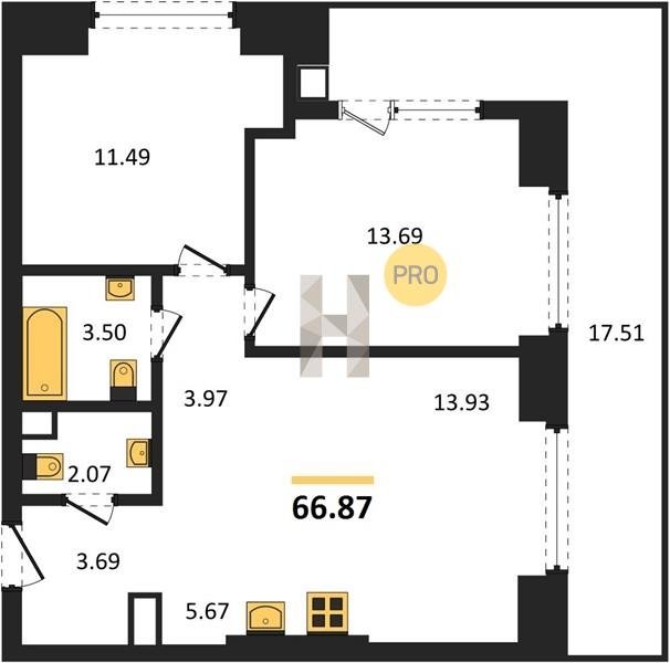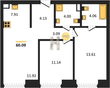 Площадь от 58.09 м2