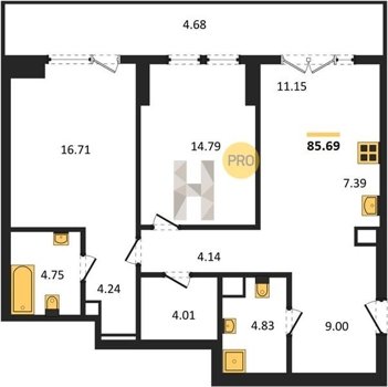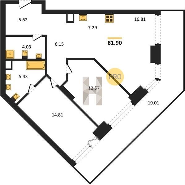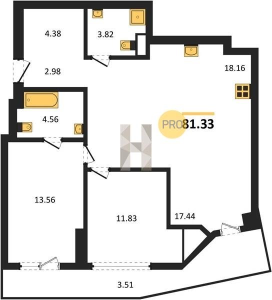 Площадь от 82.06 м2