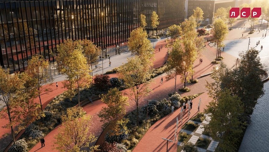 Вся общественная застройка проекта будет расположена вдоль центрального пешеходного бульвара длиной более 1200 м. Кроме офисных зданий здесь музеи, театры, концертный зал на 3,5 тыс. мест, гостиница, детский развлекательный центр, торговый центр, рестораны с кухнями народов мира и прочее. Подземный паркинг, расположенный под центральным бульваром, создает дополнительный комфорт для посетителей.