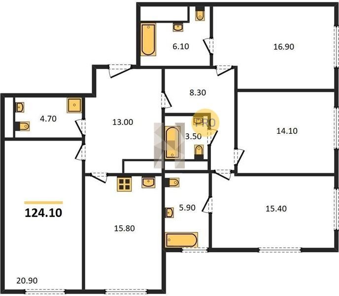 Площадь от 124.1 м2