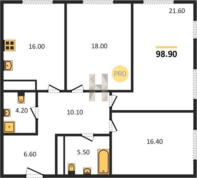 Площадь от 98.9 м2