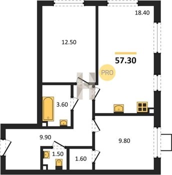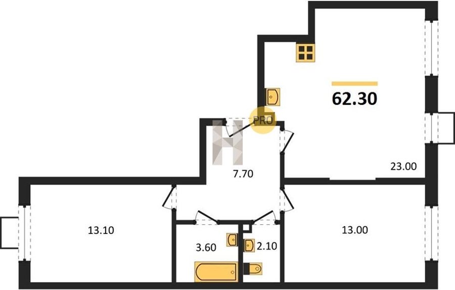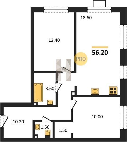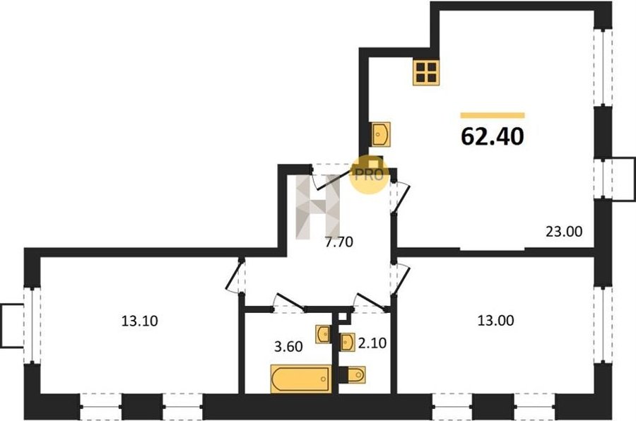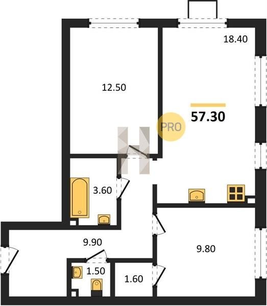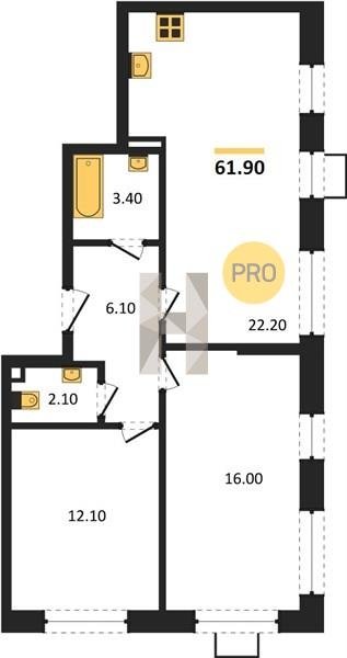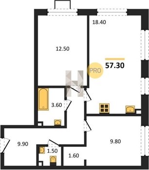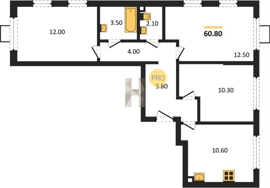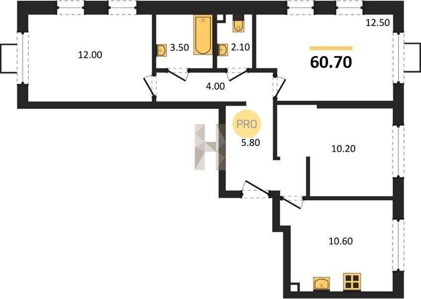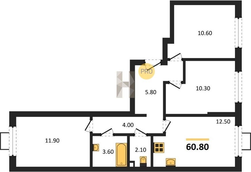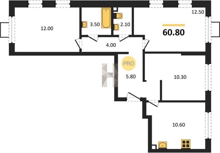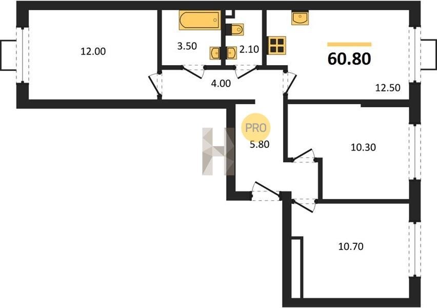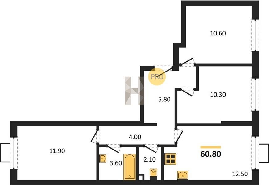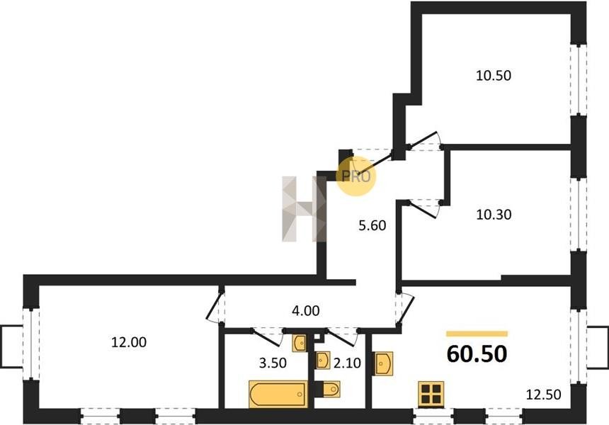 Площадь от 60.4 м2