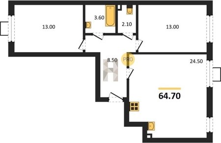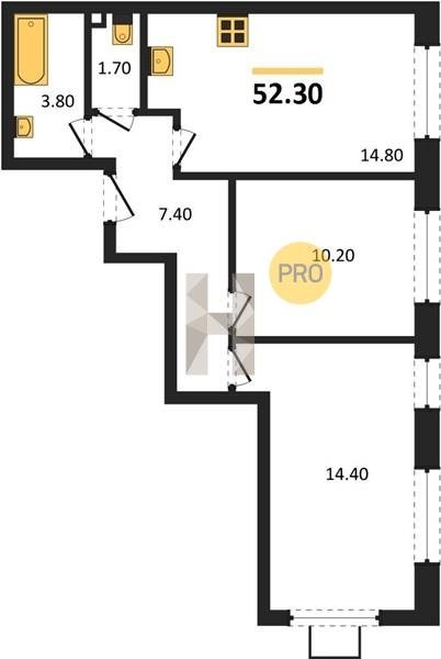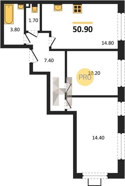 Площадь от 50.9 м2