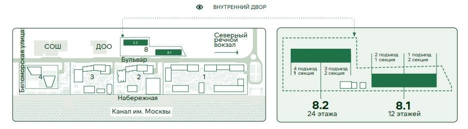 Жилой комплекс - город-курорт площадью 14 гектар с тремя линиями жилых домов, бульваром и прогулочной набережной, перетекающей в променад Северного вокзала. Эстетику и умиротворяющую атмосферу определила близость большой воды, парков, курсирующие теплоходы и захватывающие пейзажи московского неба. Эта курортная атмосфера не имеет сезонности и укутывает собой вне зависимости от времени года.Архитектурная концепция ЖК была разработана бюро АПЕКС. Фасадные решения вдохновлены разнообразием поверхности воды – ритмичной, шумной, объемной, динамичной, гладкой или спокойной. Высотность зданий составляет 10–68 этажей. Каждое из них обладает своим характером и индивидуальностью, при этом вместе они формируют ощущение единой курортной городской среды. Для каждого формата квартиры - от студий до четырехкомнатных - разработано множество вариантов планировок, соответствующих разным стилям жизни и приоритетам. Доступны квартиры с собственной террасой, отдельным входом со стороны парка, возможностью устройства собственного палисадника. Такое планировочное решение позволяет в полной мере прочувствовать все плюсы городской жизни на курорте. Расположение каждого дома продумано таким образом, что у большей части квартир открываются виды на воду, закаты и природный ландшафт.У каждого дома – свой приватный безопасный двор с индивидуальным ландшафтным дизайном, игровыми площадками и прямым доступом к благоустроенной набережной протяженностью 3,2 км. Набережная станет настоящим променадом с бутиками, ресторанами с уютными террасами, зонами для принятия солнечных ванн. Отдых начинается всего в паре минут от дома.Разнообразная инфраструктура района Левобережный и его окружения дарит редкую возможность выбора: парка для прогулки с детьми, маршрута для пробежки, коротких или длинных путешествий, а также ресторанов для разных поводов и настроения, фитнеса, частных или государственных школ. При этом у локации отличная транспортная доступность, удобный выезд в центр и загород.В дополнение к этому на территории жилого комплекса появятся рестораны и кафе, магазины, аква- и фитнес-центр, школа и детский сад. На первых этажах домов – кафе, супермаркеты и сервисы шаговой доступности. В рамках ЖК будет построен дом Wellness – спортивный комплекс со СПА центром. Здесь предусмотрено всё, что поможет вам поддерживать отличную форму: тренажёрные залы, студии для групповых и индивидуальных занятий, сауны, массажные кабинеты и приватные зоны для отдыха.