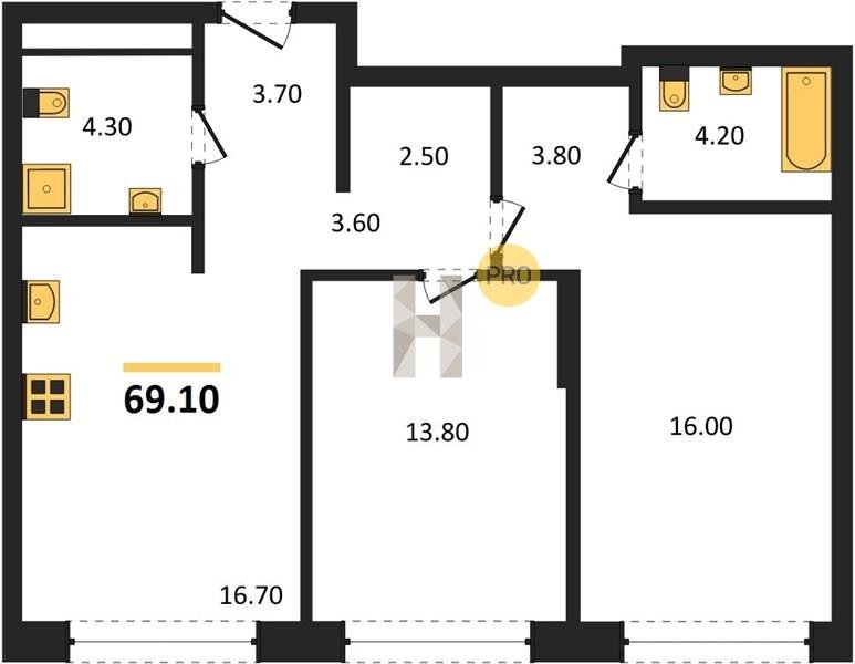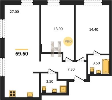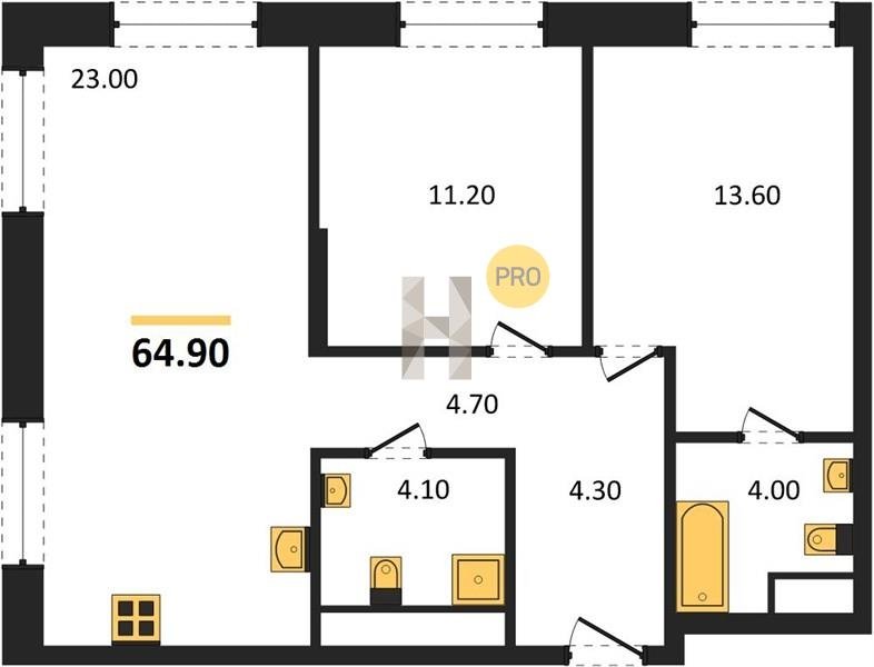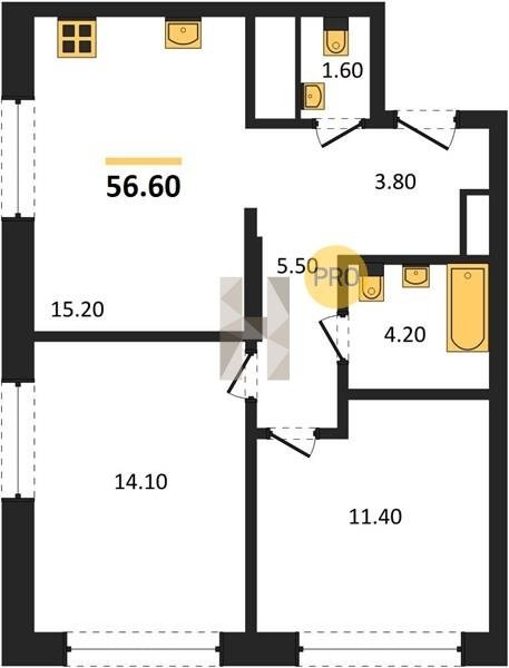 Площадь от 56.6 м2