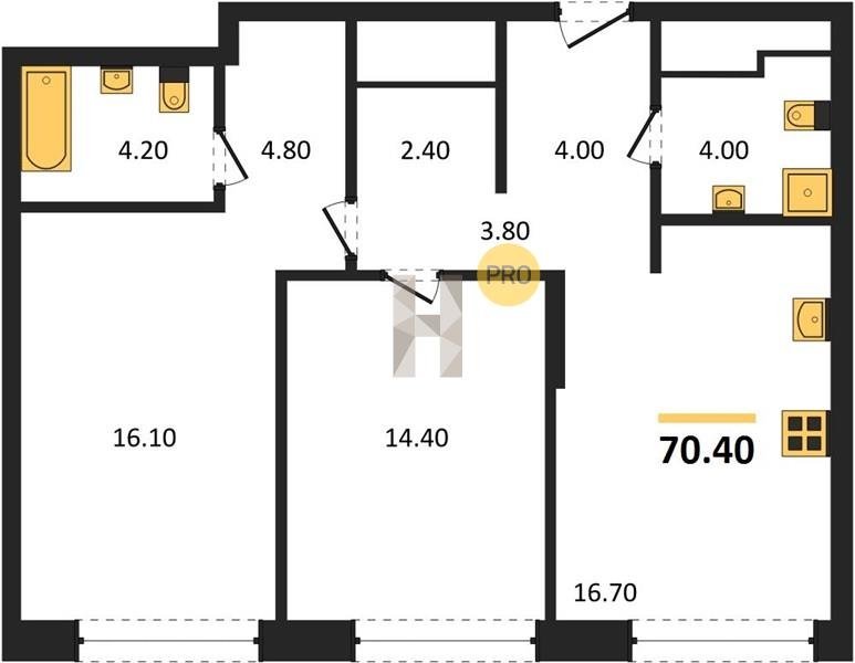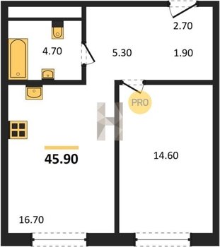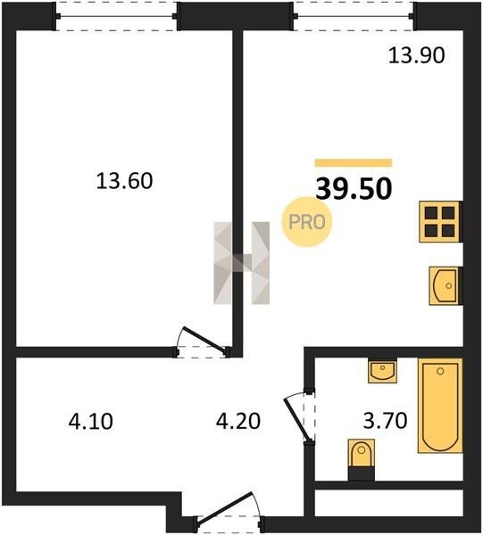 Площадь от 38.5 м2