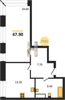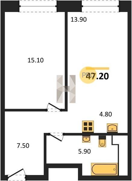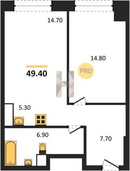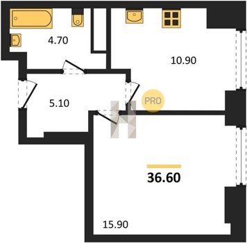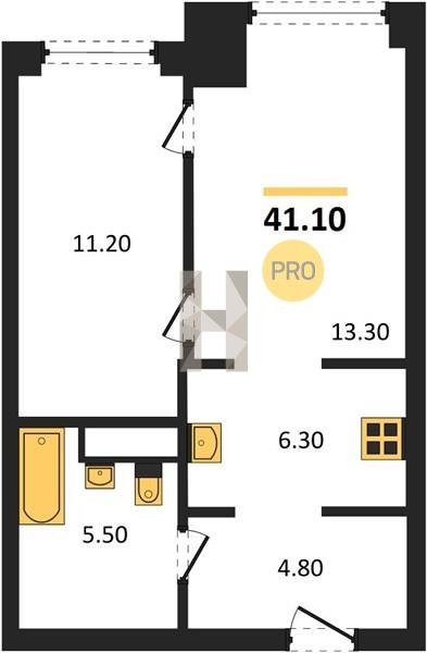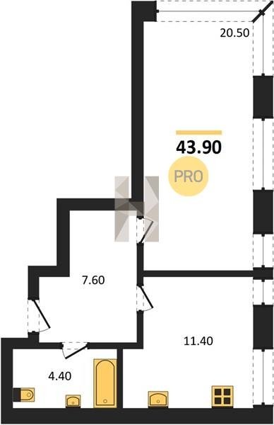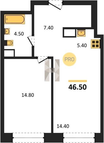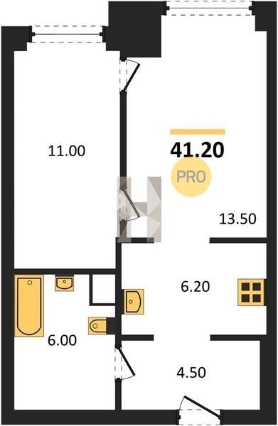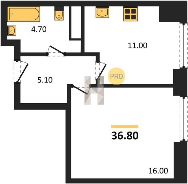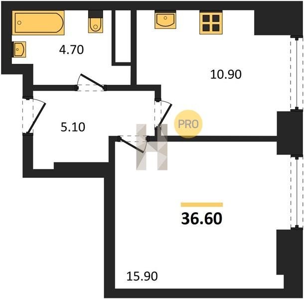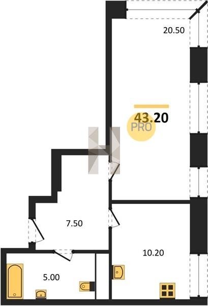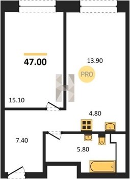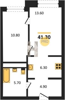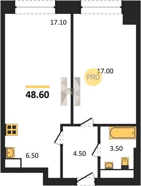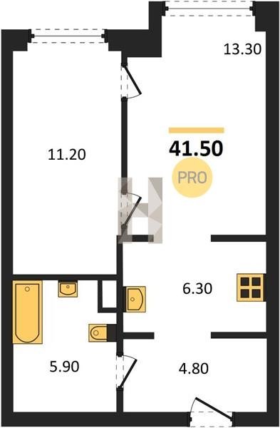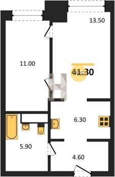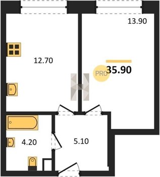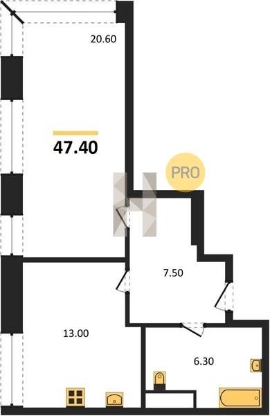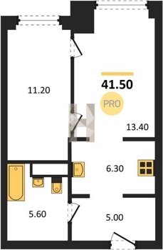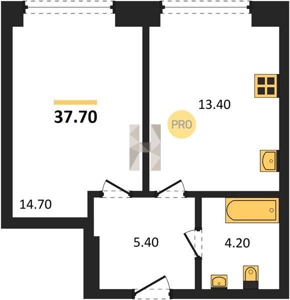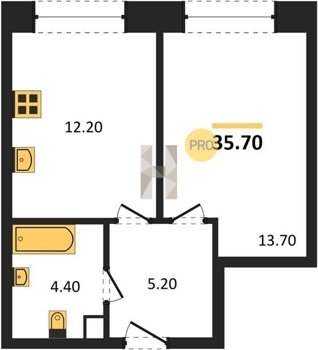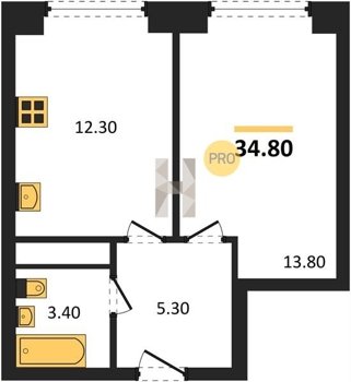 Площадь от 34.7 м2