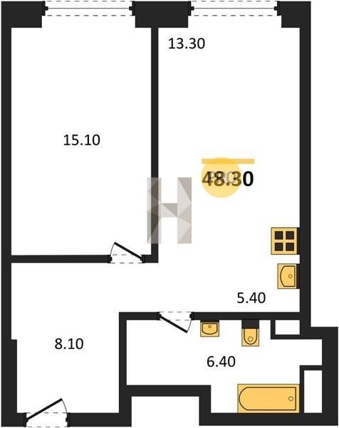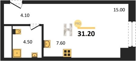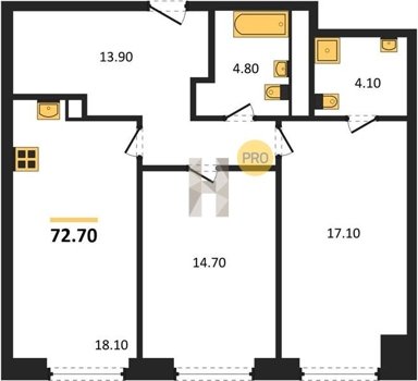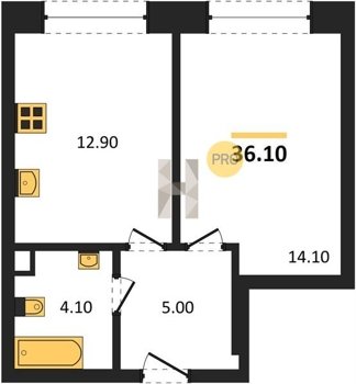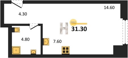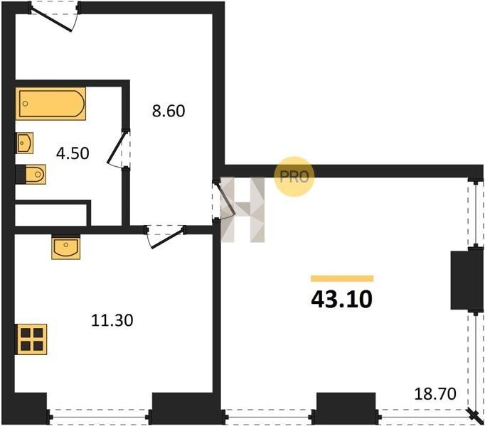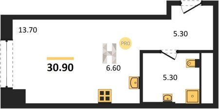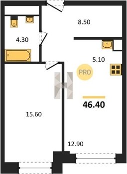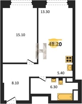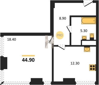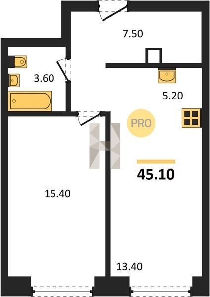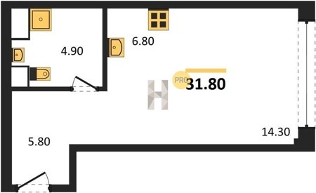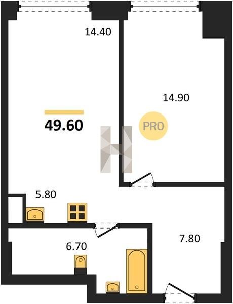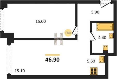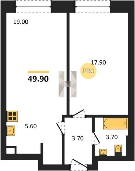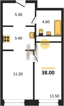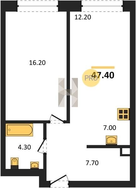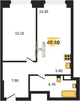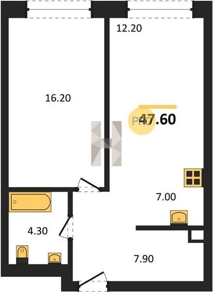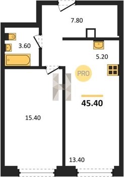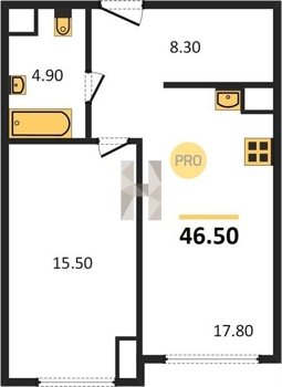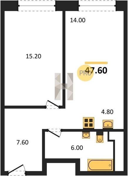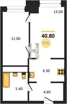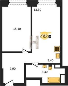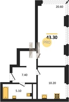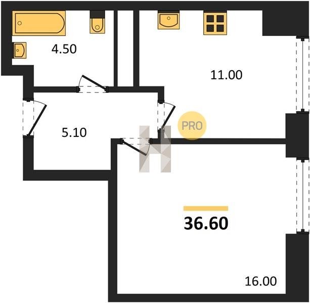 Площадь от 34.7 м2