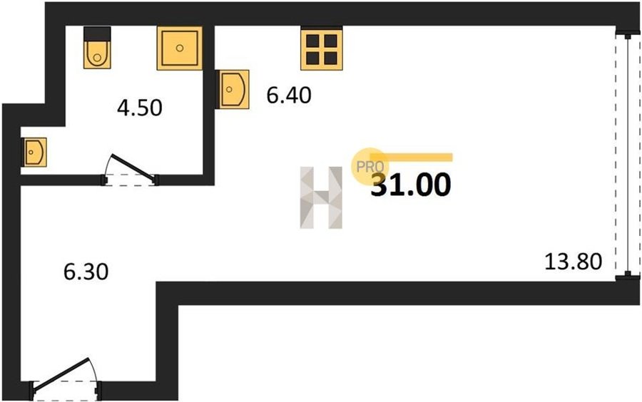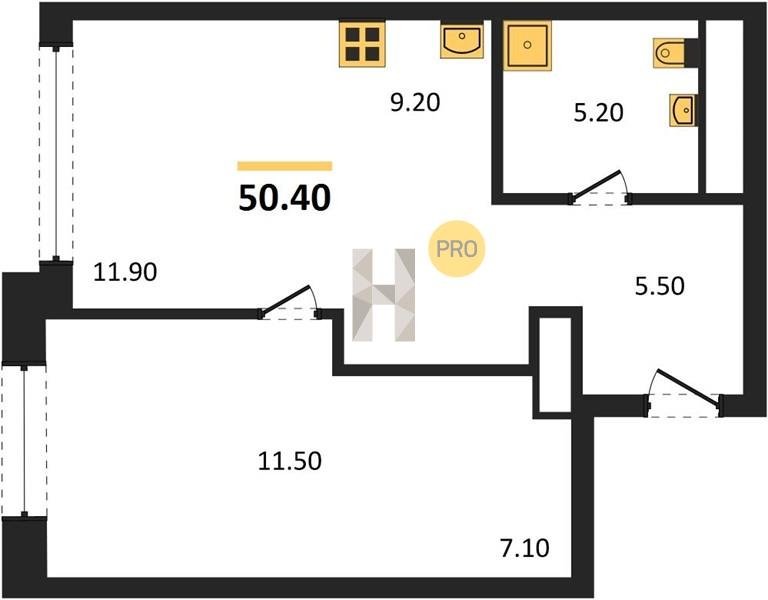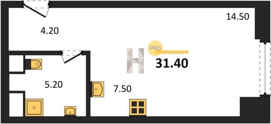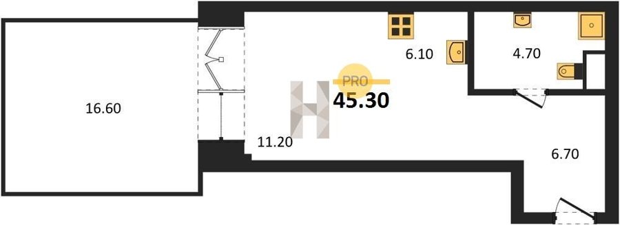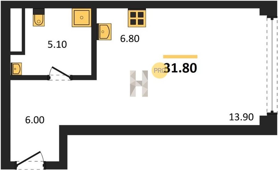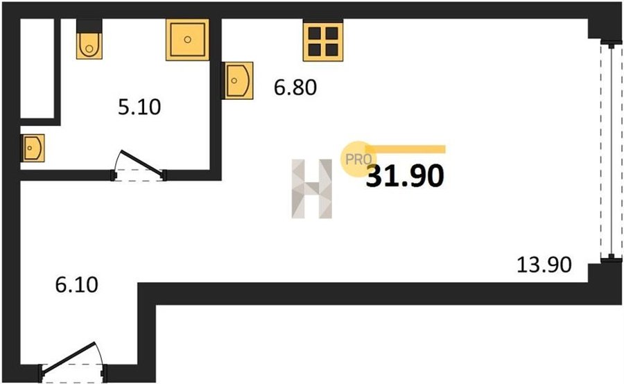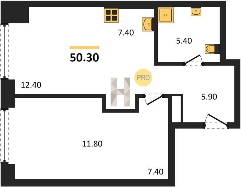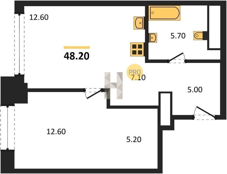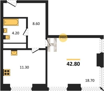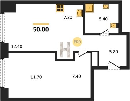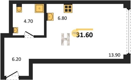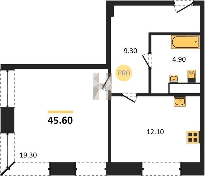 Площадь от 34.7 м2