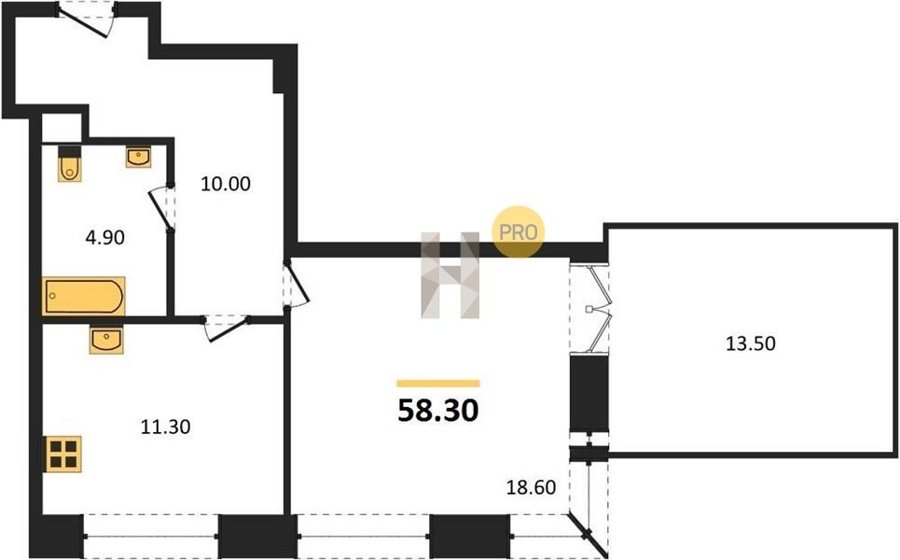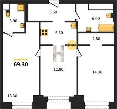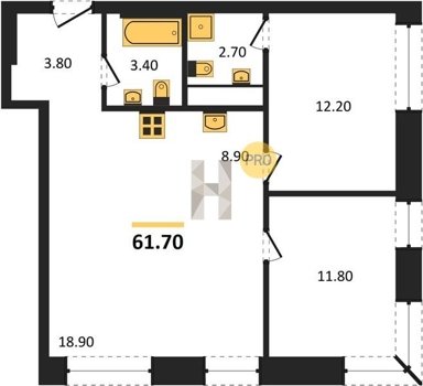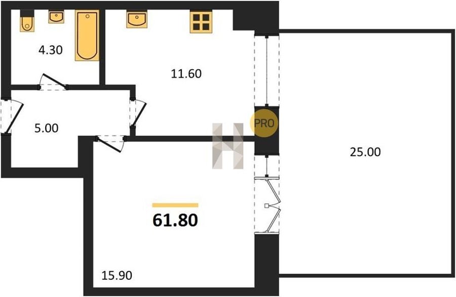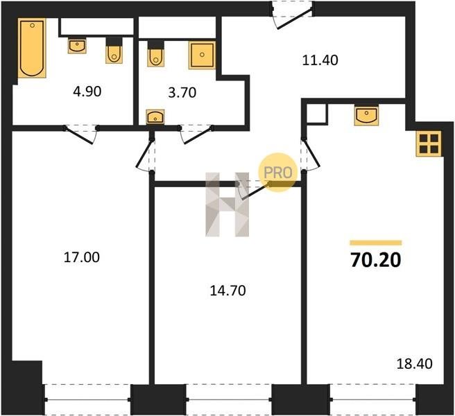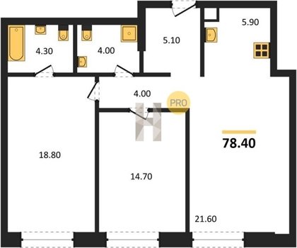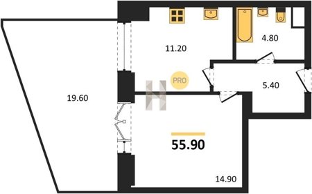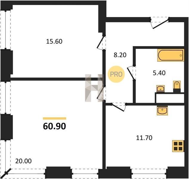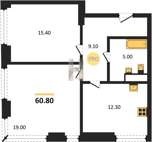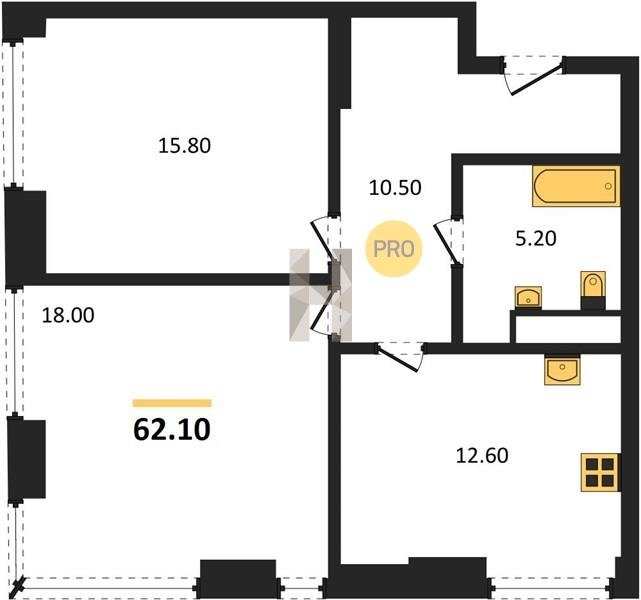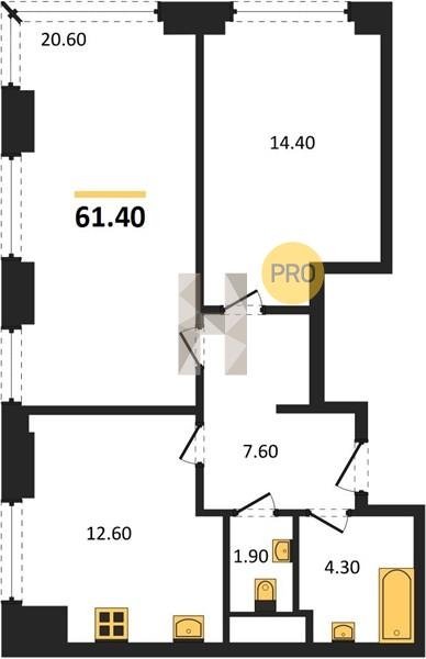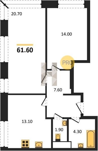Площадь от 60.6 м2