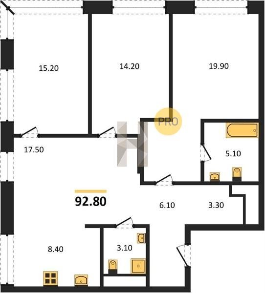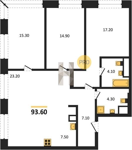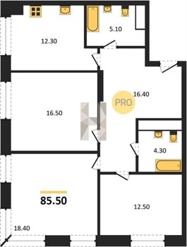 Площадь от 85.5 м2