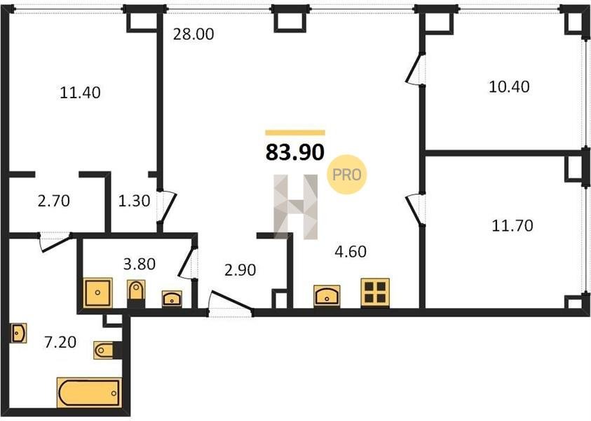 Площадь от 27.8 м2