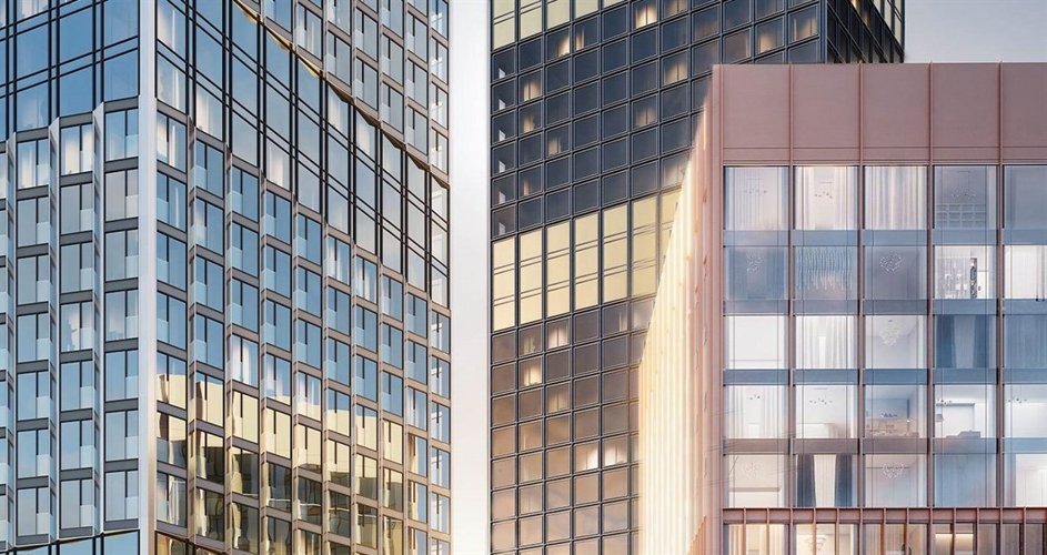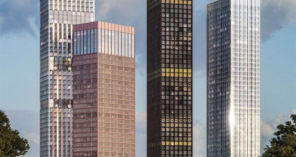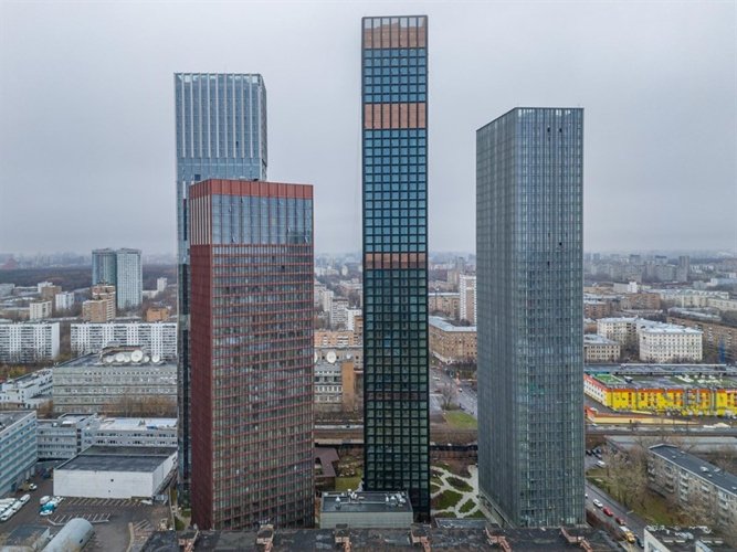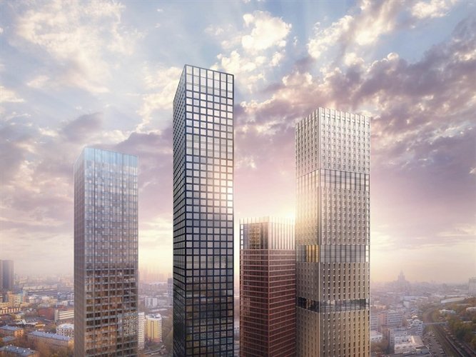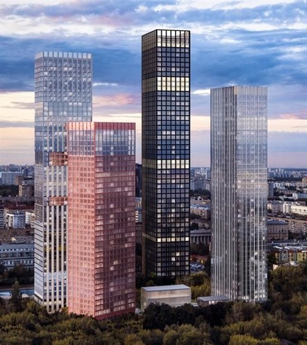 В состав ЖК войдут четыре башни высотой от 36 до 54 этажей. Индивидуальность каждой из башен подчеркивается выбранным архитектурным решением, а все вместе они складываются в продуманную целостную композицию. Для фасадов каждой из башен выбрано свое визуальное решение. Материалы фасадов, давшие названия башням, гармонично сочетаются друг с другом. Лента прозрачных этажей, опоясывающая каждую из башен, визуально объединяет их в зафиксированный архитектурный объем.