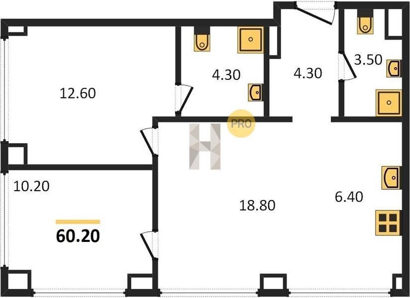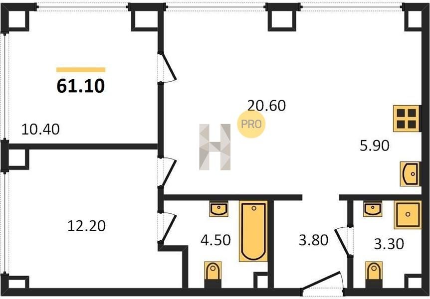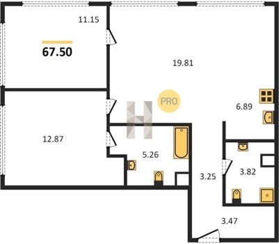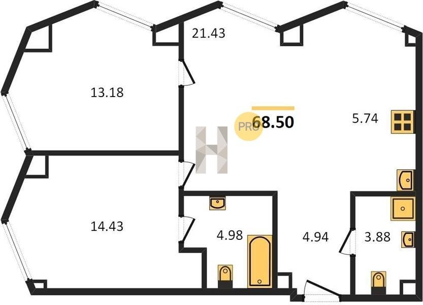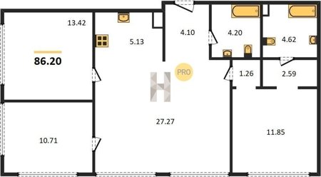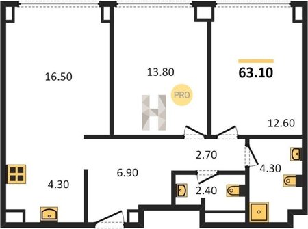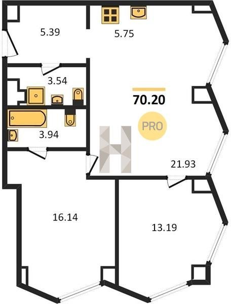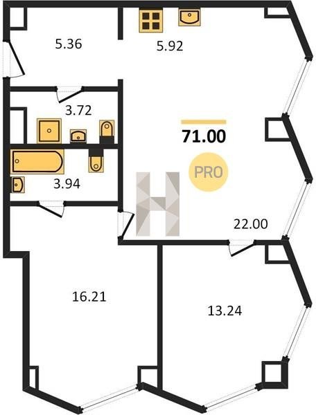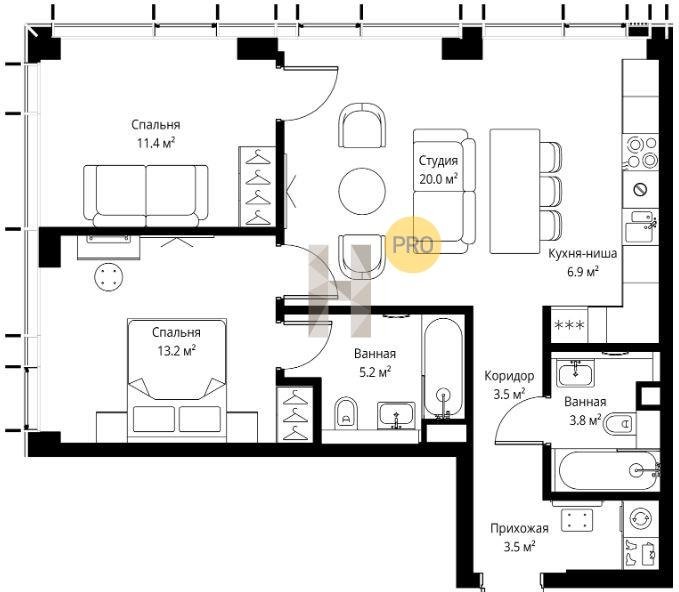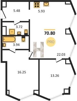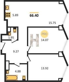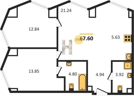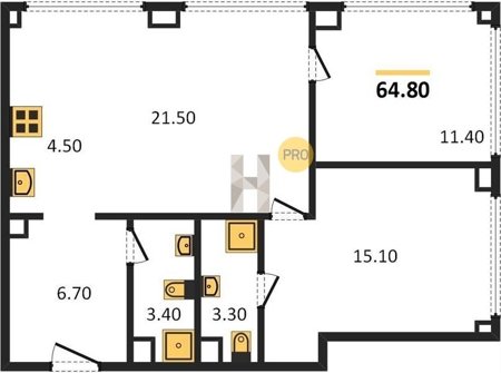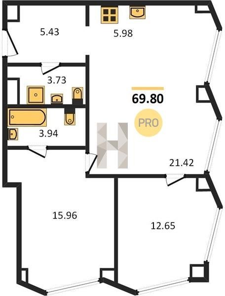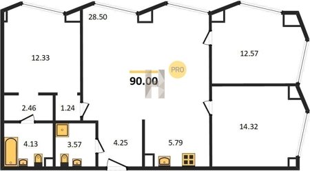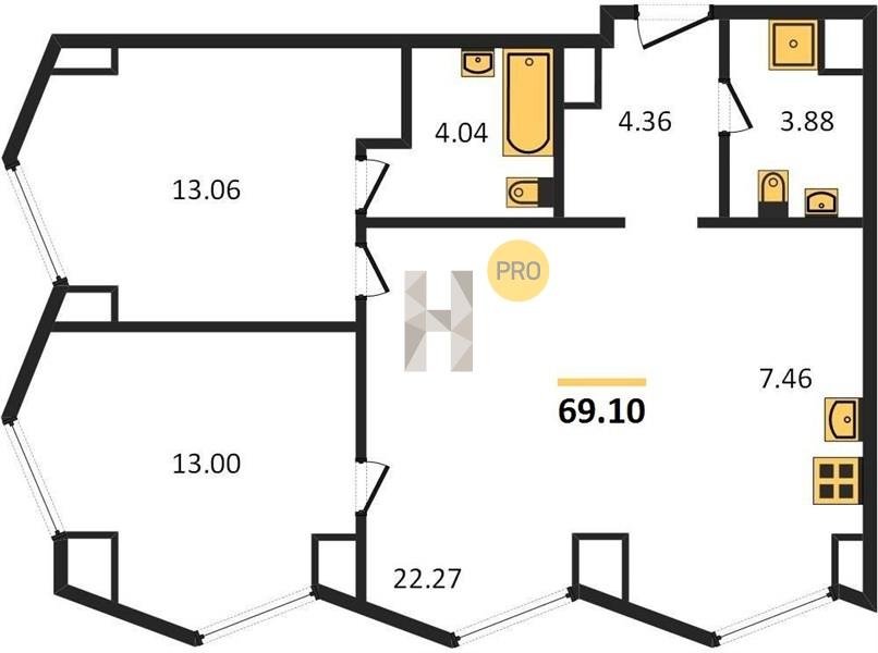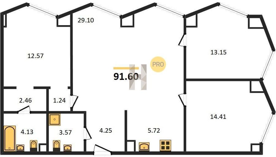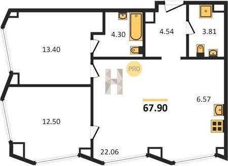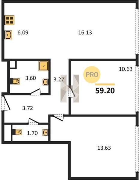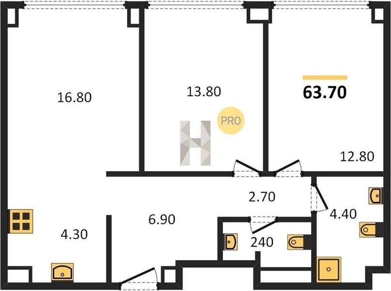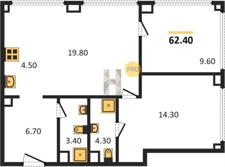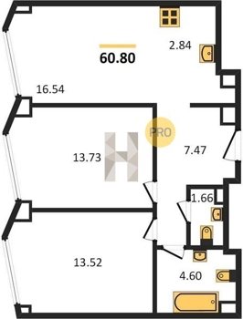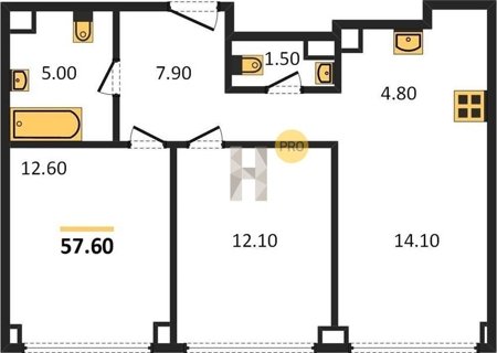 Площадь от 57.6 м2