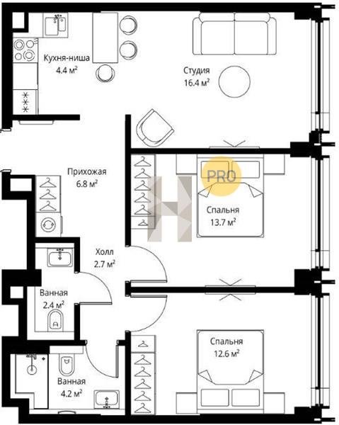 Площадь от 31.8 м2