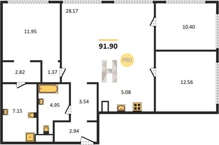 Площадь от 81.5 м2