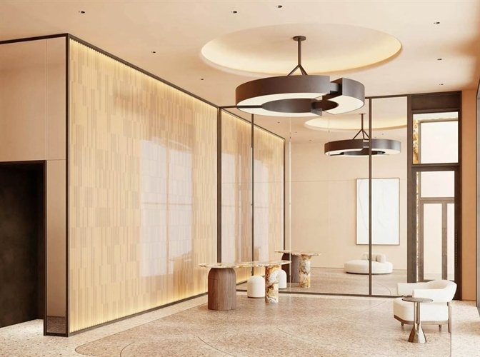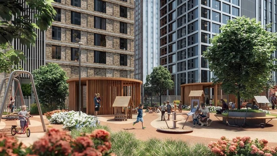 В каждом корпусе будут расположены зоны ресепшн с лаундж-зонами, колясочные комнаты, санузлы и мойка для лап собак в отдельном помещении. Современные системы кондиционирования, шумо- и звукоизоляции, скоростные бесшумные лифты, система «умный дом» с датчиками контроля электропотребления, защиты от протечек, пожарной и охранной сигнализации. Обязательной и важной частью проекта является большая уникальная детская площадка из натурального дерева на песке.