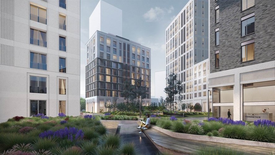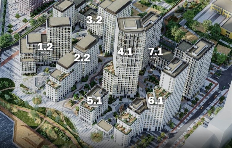 Главной особенностью жилого квартала является соседство разных типологий застройки и форматов жилья — от таунхаусов до небоскребов.