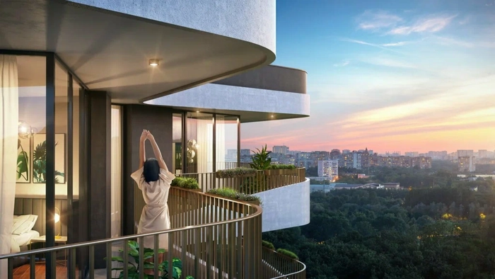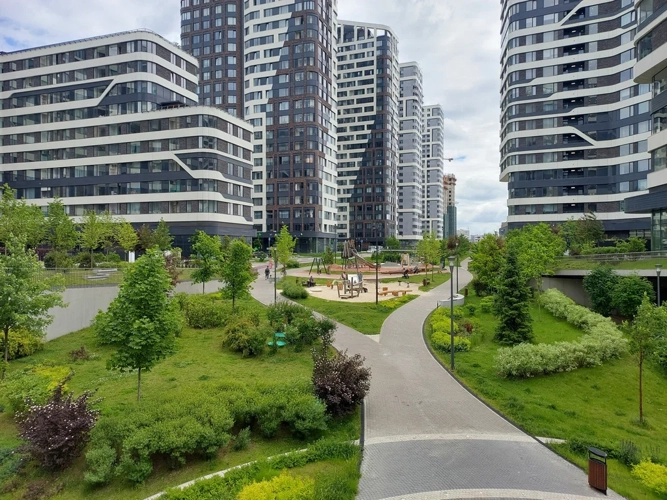 Видовые квартиры позволяют жителям любоваться архитектурой города, парком" Зеленая река"