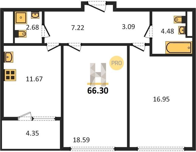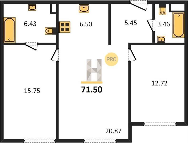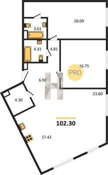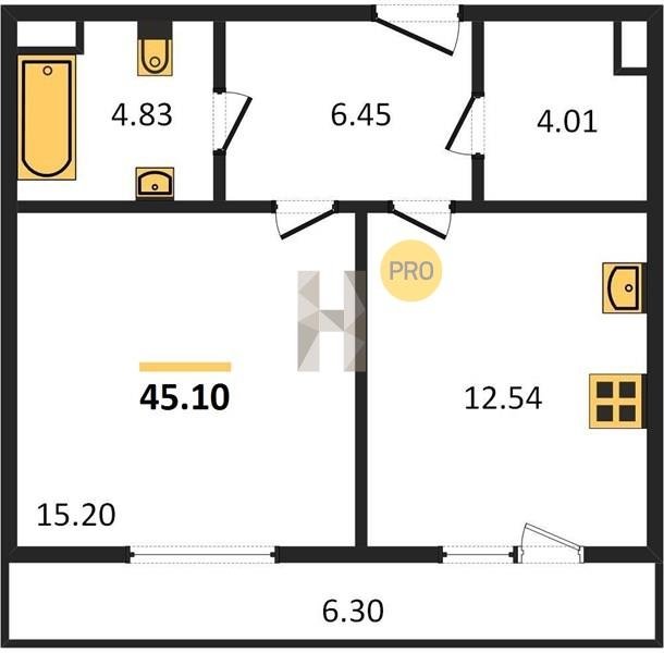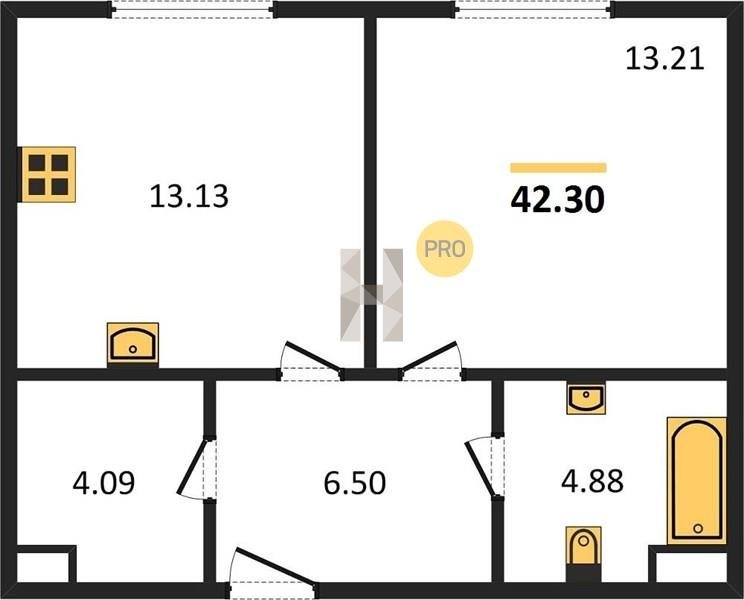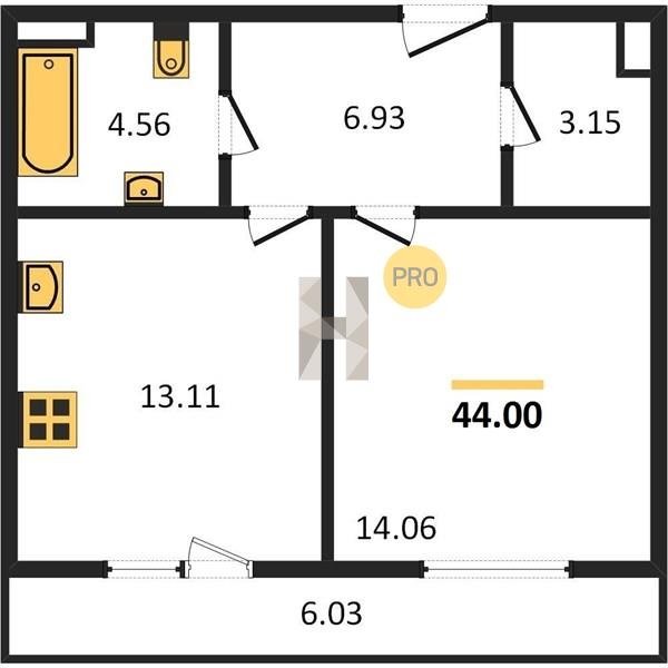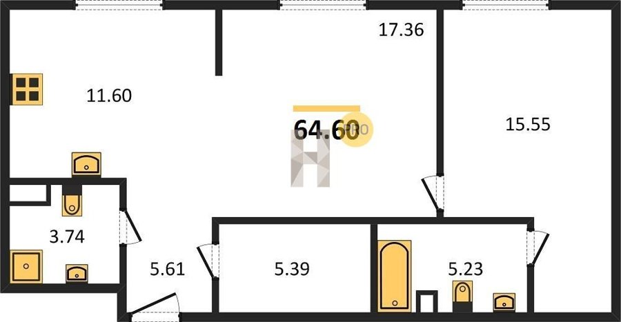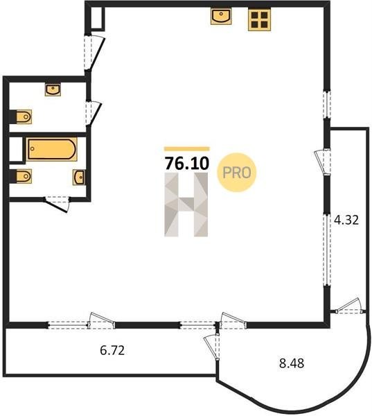 Площадь от 46.5 м2