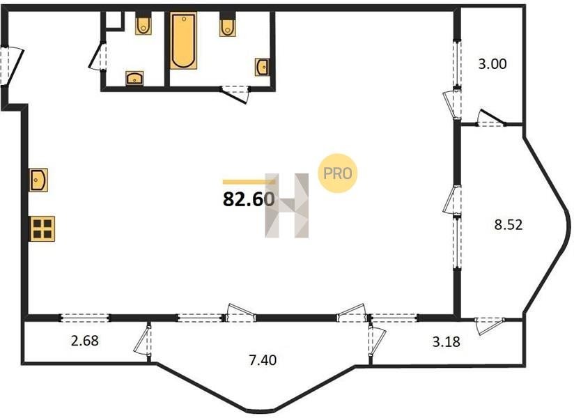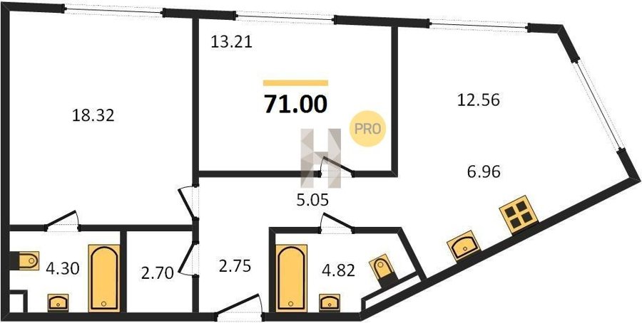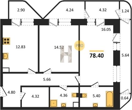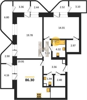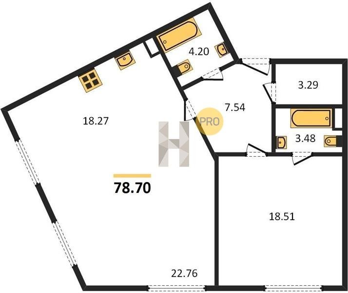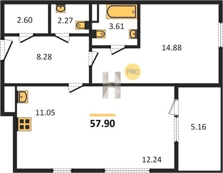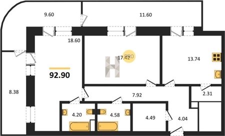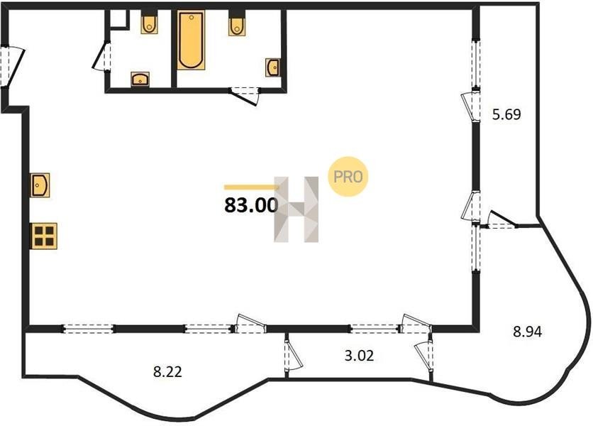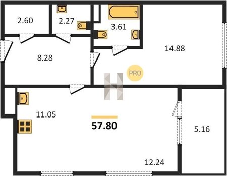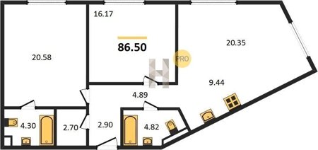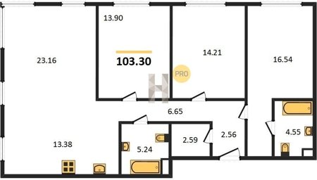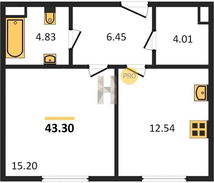 Площадь от 46.5 м2