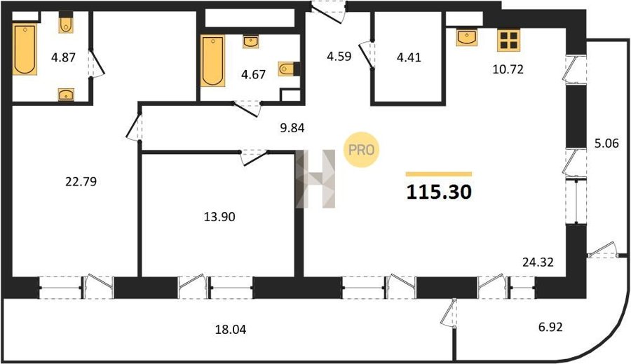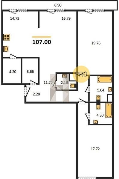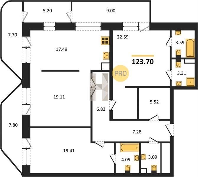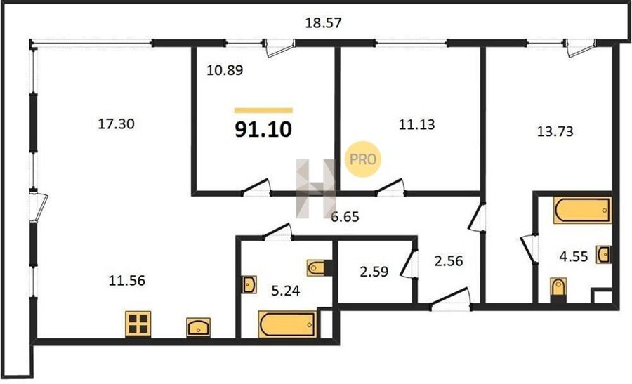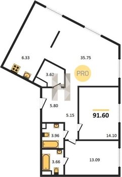 Площадь от 91.1 м2