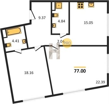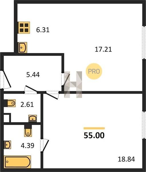 Площадь от 38.7 м2