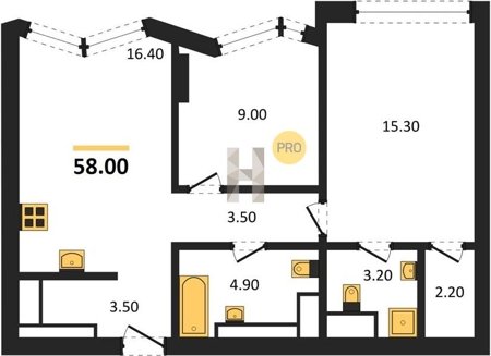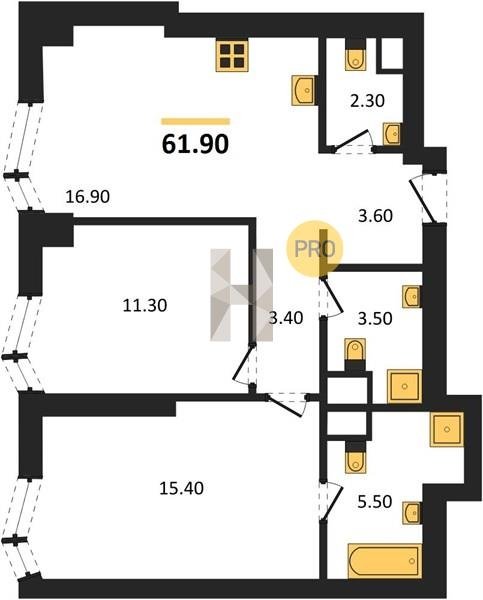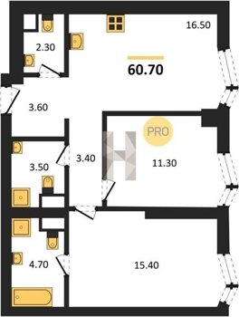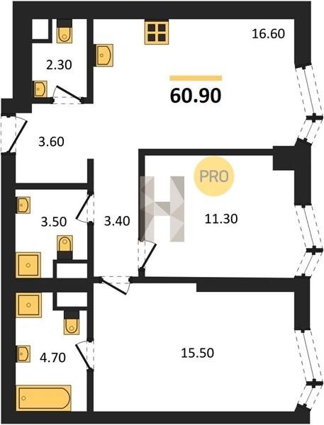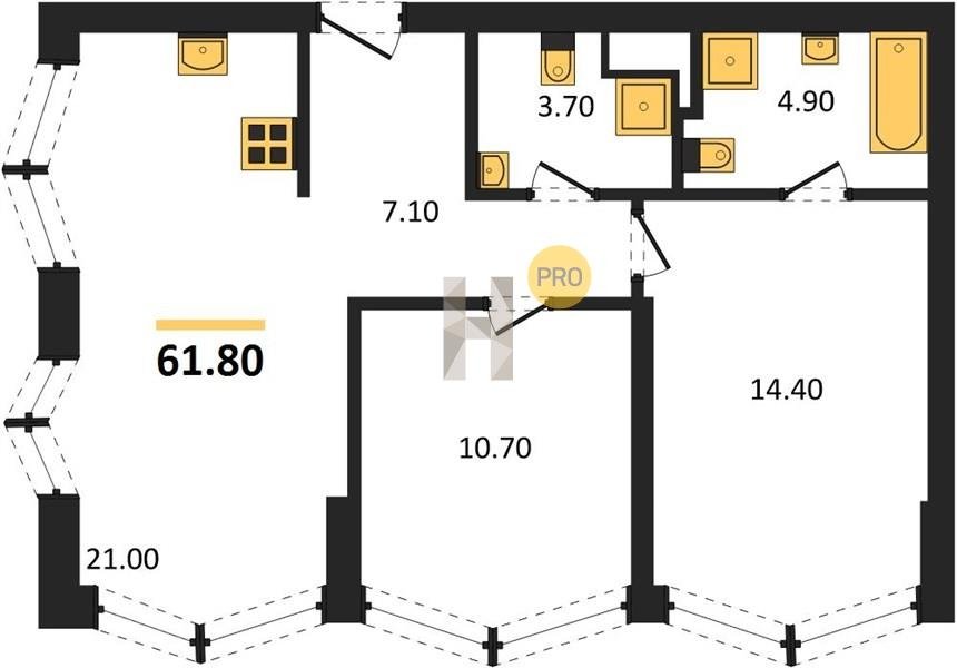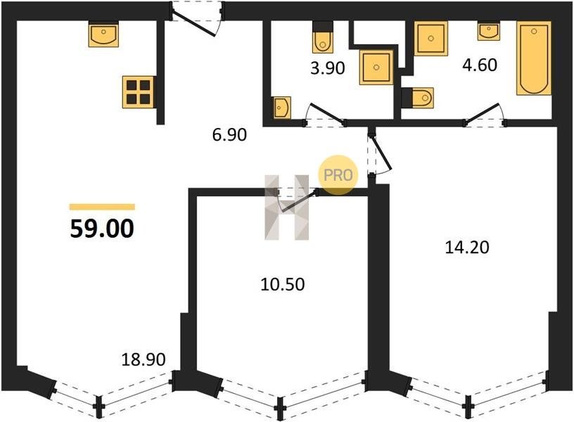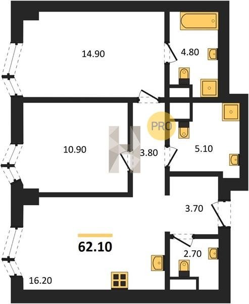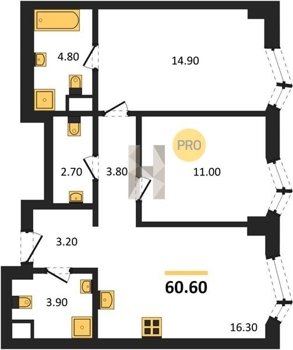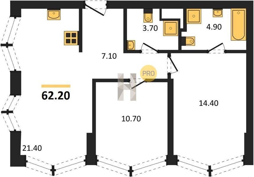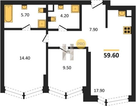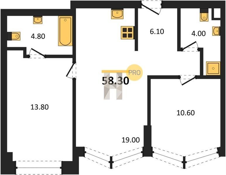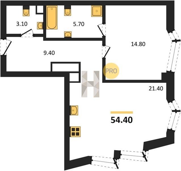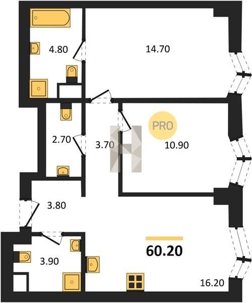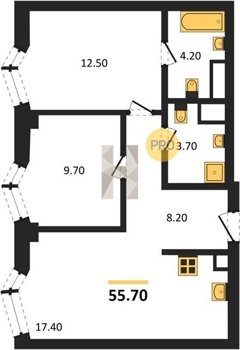 Площадь от 55.7 м2