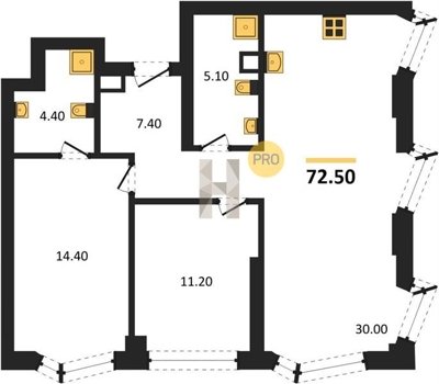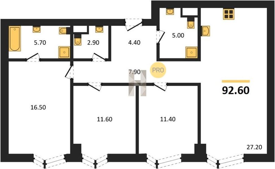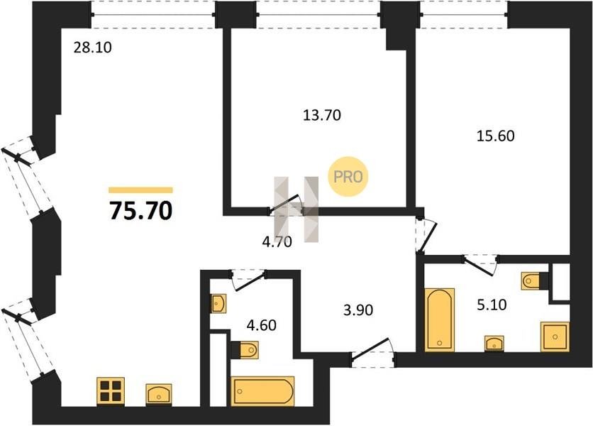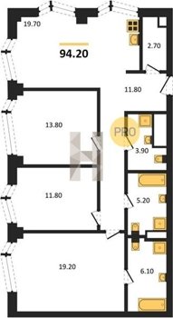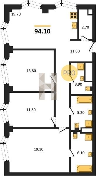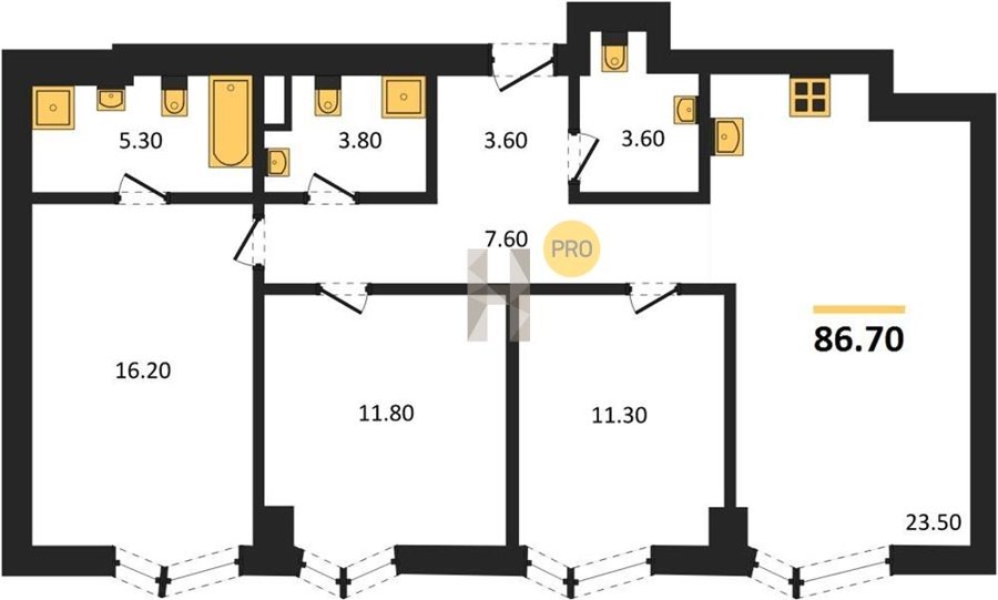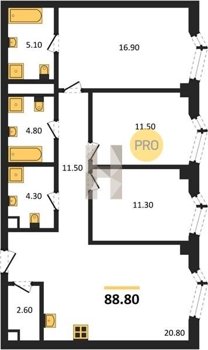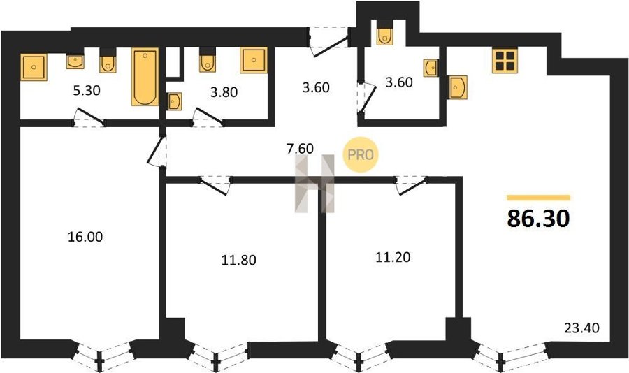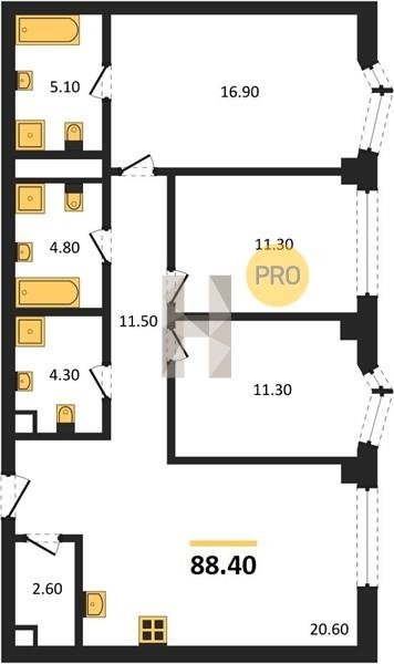 Площадь от 86.3 м2