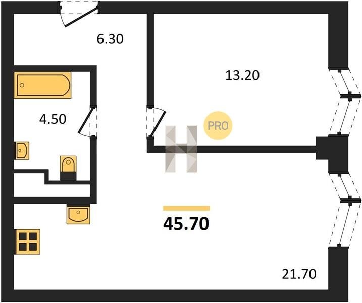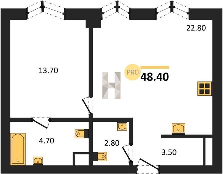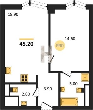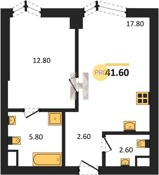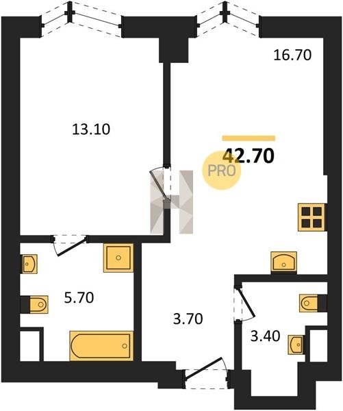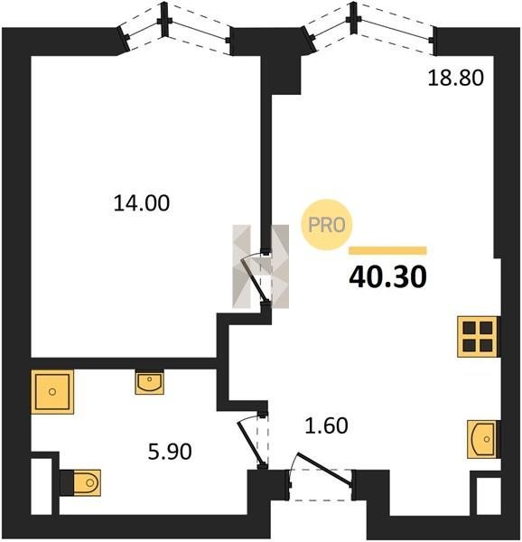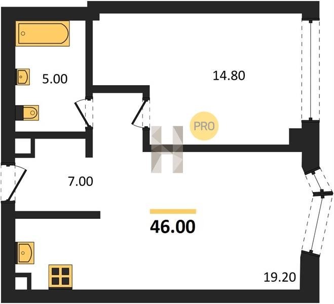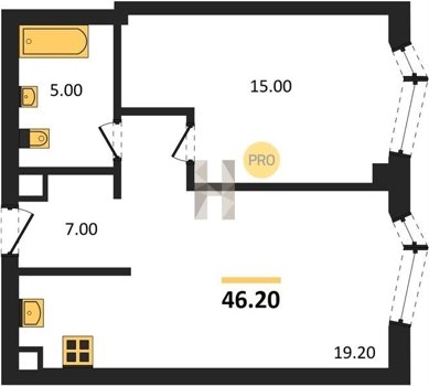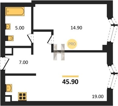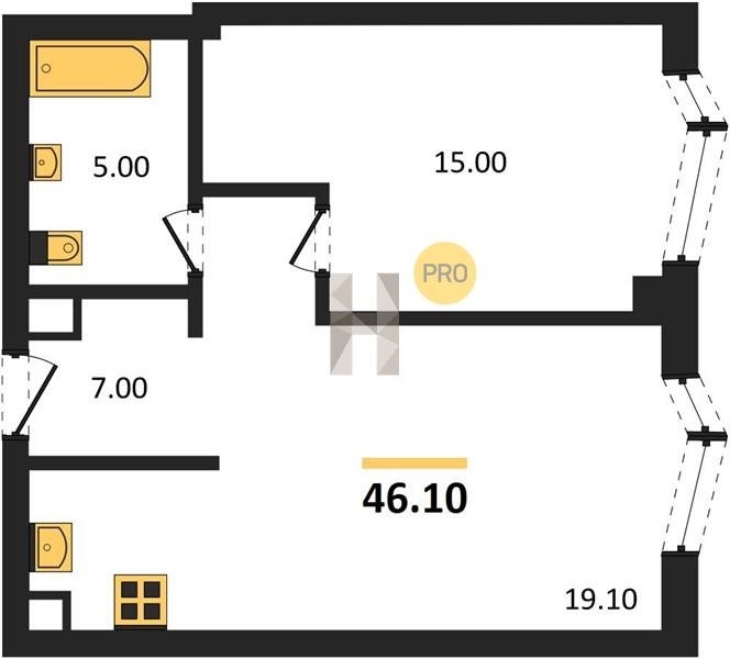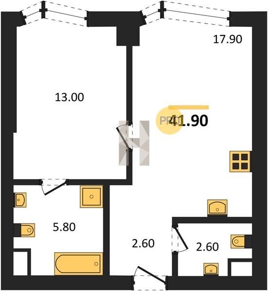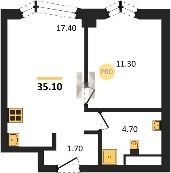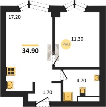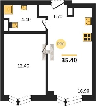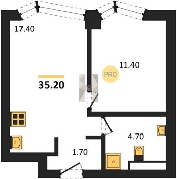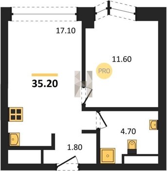 Площадь от 34.9 м2