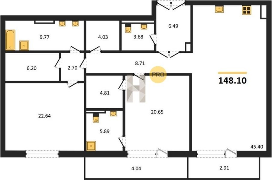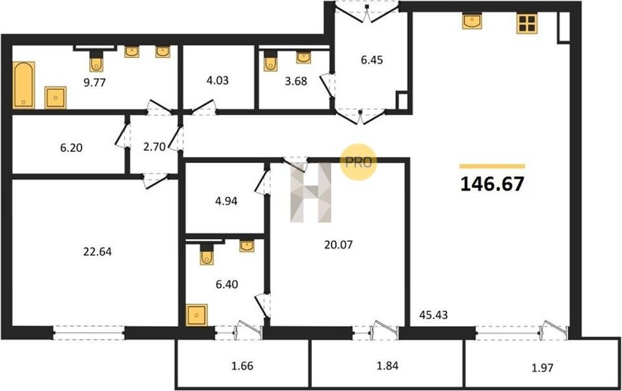 Площадь от 193.96 м2