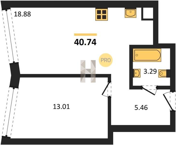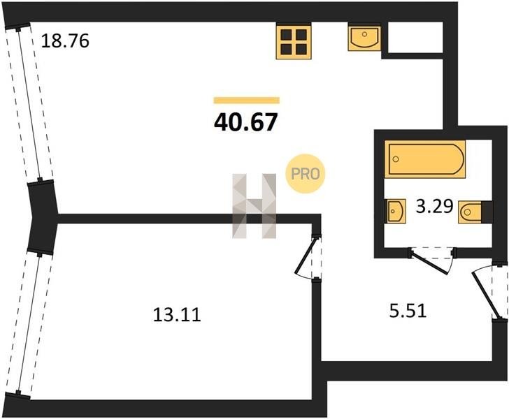 Площадь от 40.62 м2