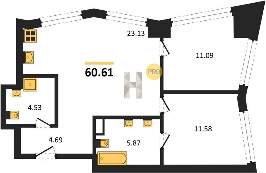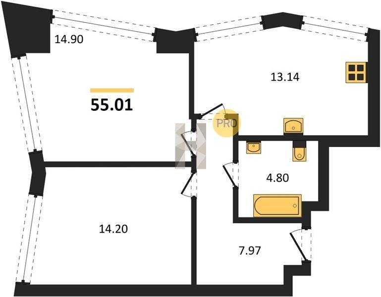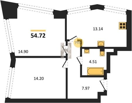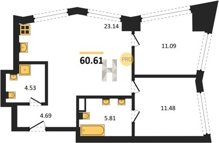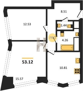 Площадь от 53.12 м2